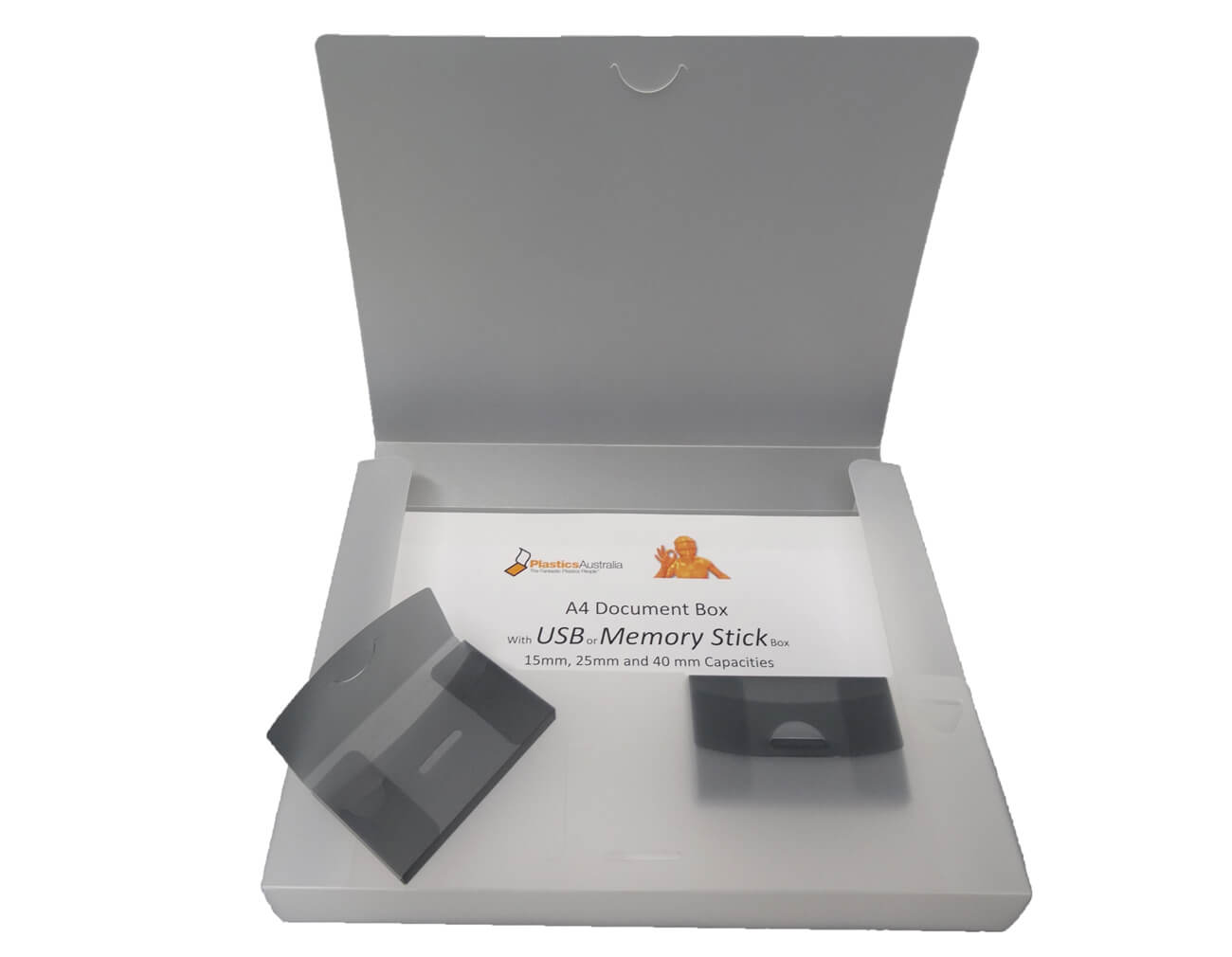 Worry no more – Plastics Australia has solved the problem with this natty USB holder, available in A4 Document Files, or Poly satchels.
